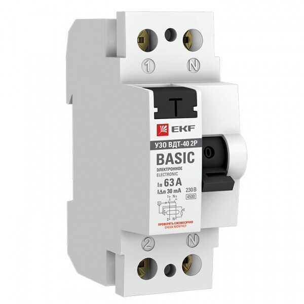 Устройство защитного отключения УЗО ВДТ-40 2P 63А/ 30мА (электронное) EKF Basic