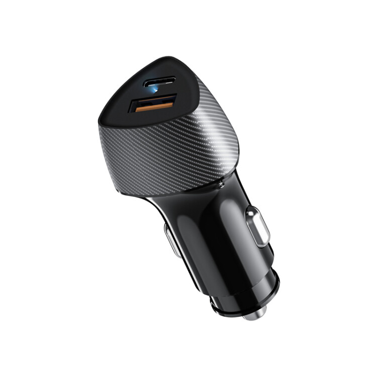Автомобильное зарядное устройство с двумя портами (USB-A QC 3.0 + USB-C PD) со световой индикацией, 51Вт, черное REXANT