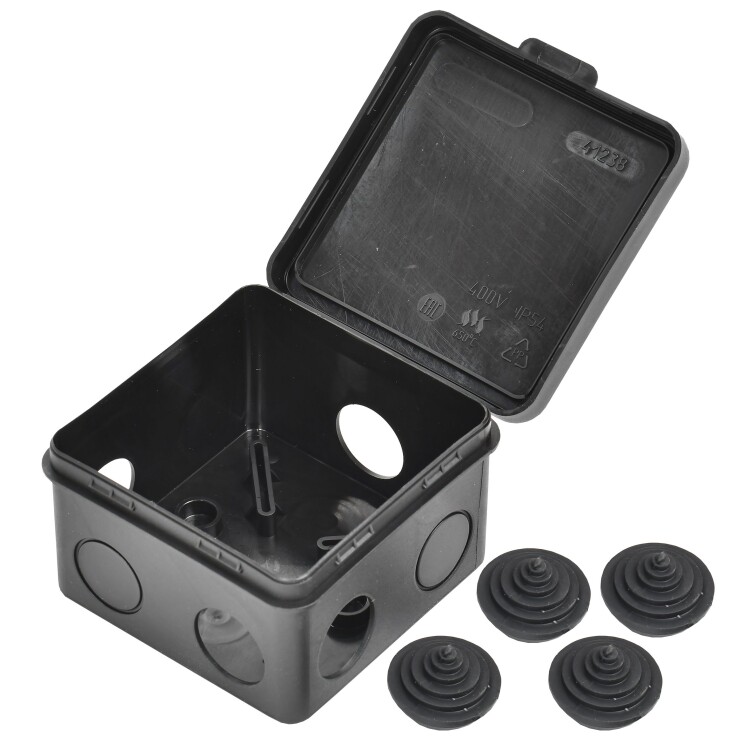 Коробка расп. КМ41238 80х80х50мм о/к IP54 7 вв. черная IEK