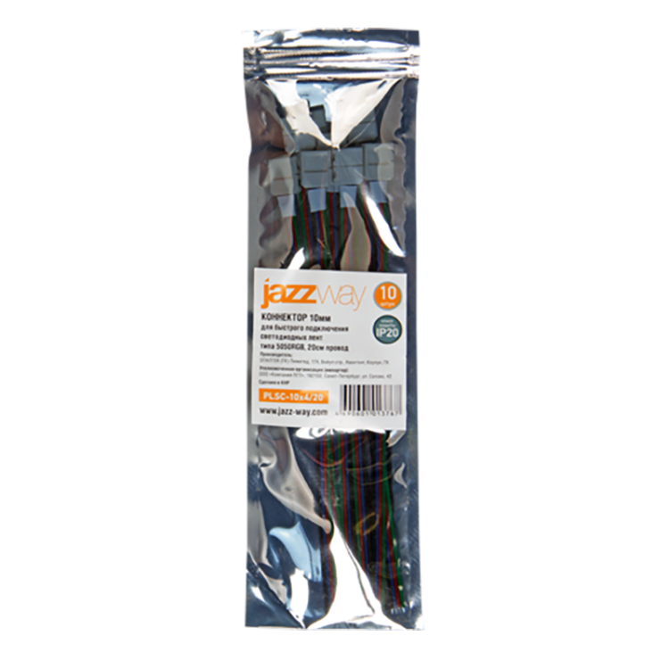 Коннектор для светодиодной ленты 10мм 4-pin + провод 15(20)см (SMD5050 RGB)