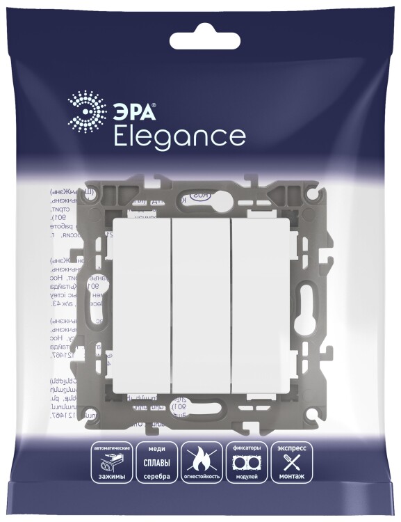 Выключатель ЭРА Elegance 14-1107-01М тройной, 10АХ-250В, белый матовый