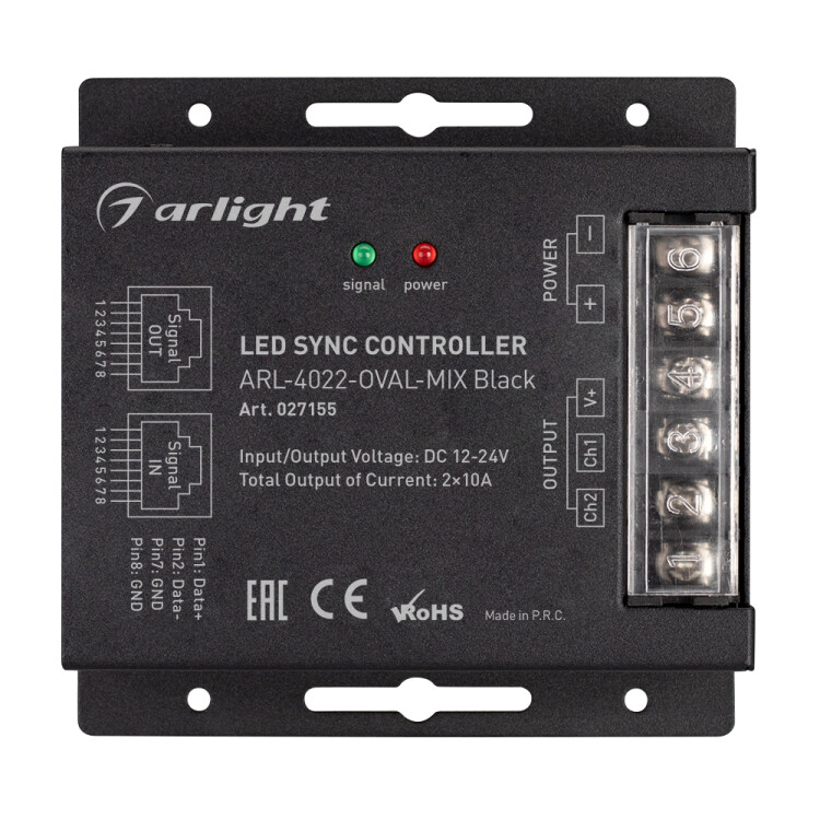 Контроллер ARL-4022-OVAL-MIX Black (12-24V, 2x10A, ПДУ, RF) (Arlight, IP20 Металл, 3 года)