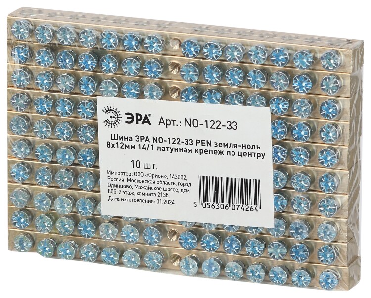 Шина ЭРА NO-122-33 PEN земля-ноль 8х12мм 14/1 латунная крепеж по центру