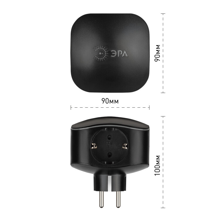 Разветвитель электрический ЭРА SP-3e-USB-BLACK на 3 розетки + 2 USB с заземлением со шторками 16А черный