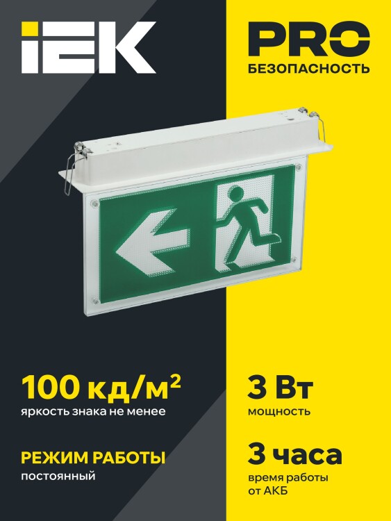 Указатель аварийный постоянный 3 часа 3Вт LED двусторонний IP20 сменный знак