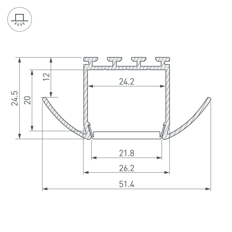 Алюминиевый Профиль встраиваемый PLS-LOCK-H25-FA-2000 ANOD (2 метра)