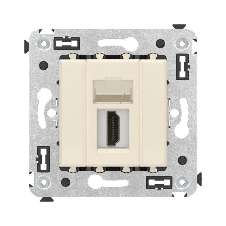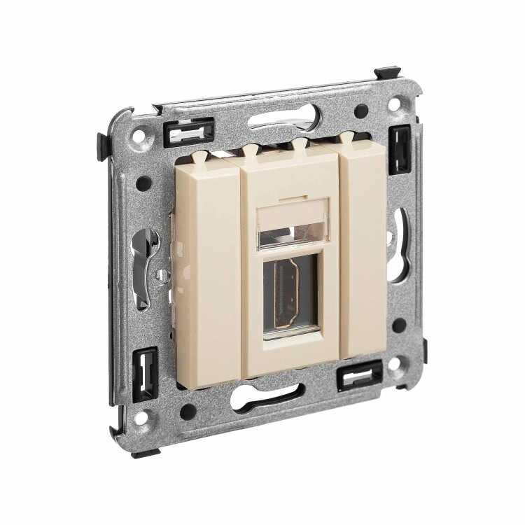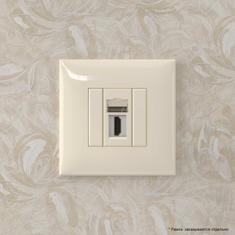 HDMI розетка одинарная в стену, тип А-А, "Avanti", "Ванильная дымка"