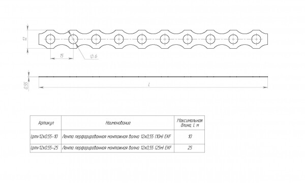 Лента перфорированная монтажная волна 12х0,55 (25 м) EKF