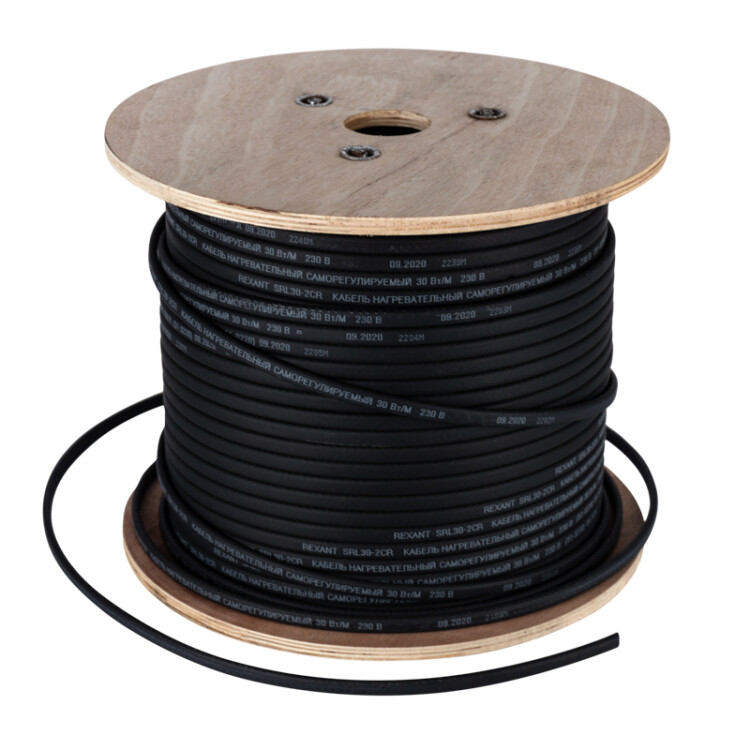 Кабель греющий (нагревательный) саморегулирующийся с УФ-защитой SRL40-2CR UV, экранированный, 40Вт/м, 1,0мм2/45м, буxта 200м REXANT