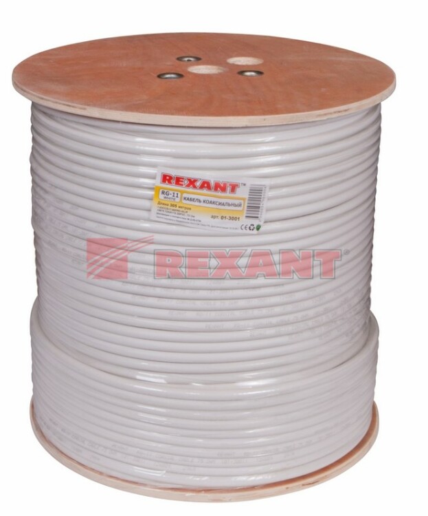 Кабель коаксиальный магистральный RG-11U, 75Ом, CCS/Al/Al, 83%, 305м, INDOOR, белый REXANT