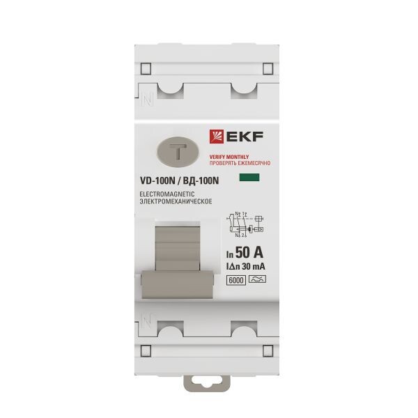 Выключатель дифференциального тока ВД-100N 2P 50А 30мА тип A эл-мех 6кА PROXIMA EKF