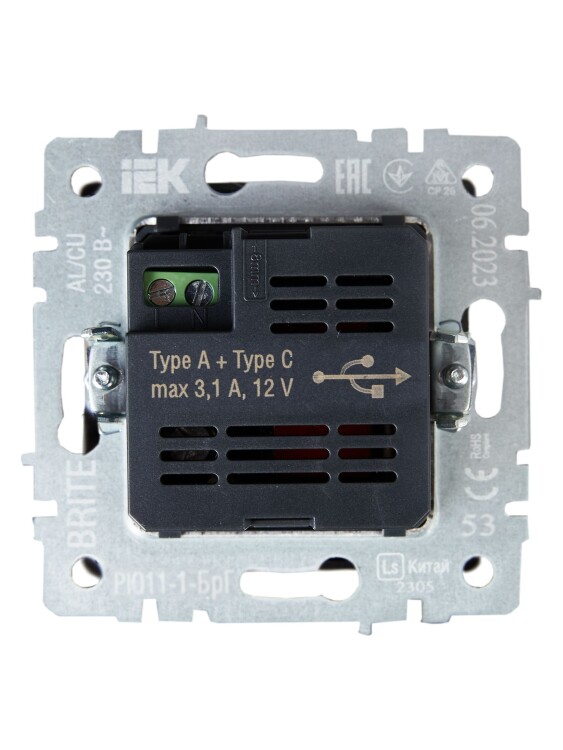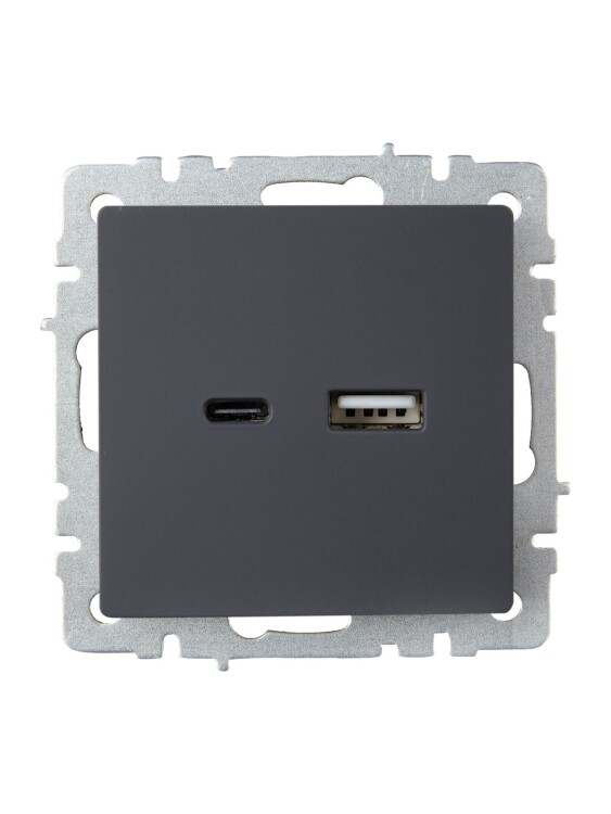Розетка USB A+C 18Вт РЮ11-1-БрГ графит BRITE