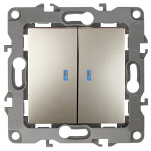 12-1105-04 ЭРА Выключатель двойной с подсветкой, 10АХ-250В, IP20, Эра12, шампань (10/100/2500)