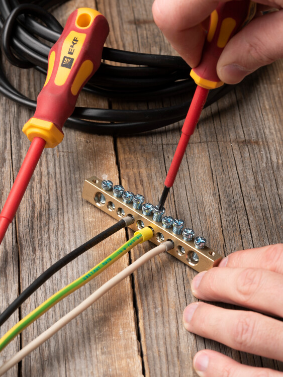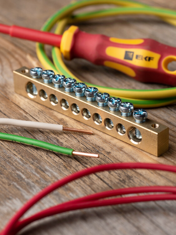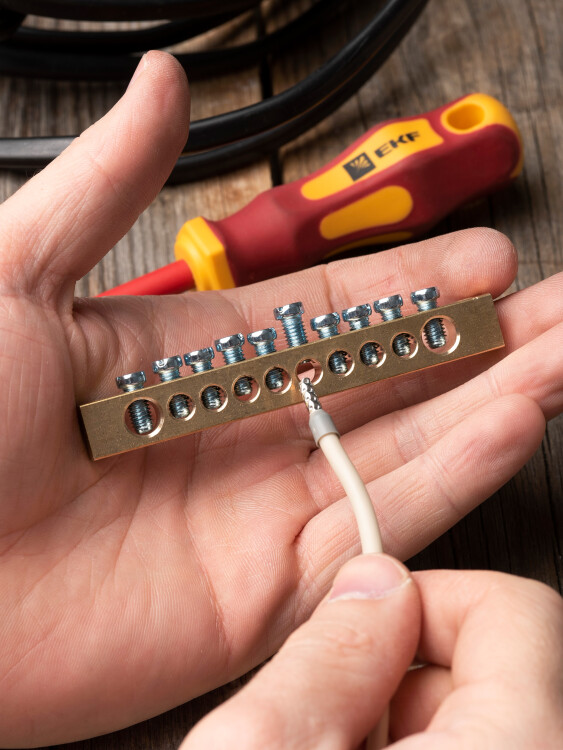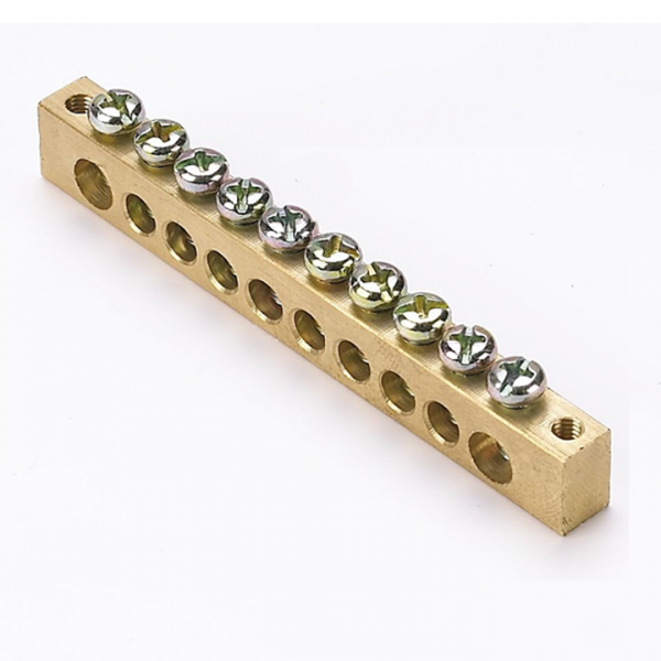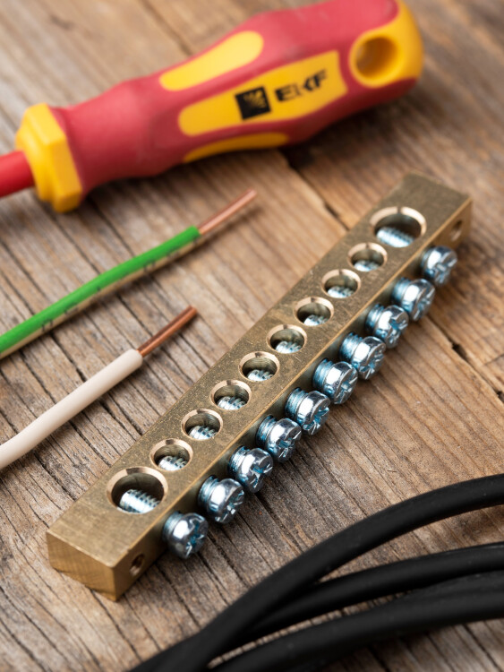 Шина PEN "ноль-земля" (8х12мм) 10 отверстий латунь крепеж по краям EKF PROxima