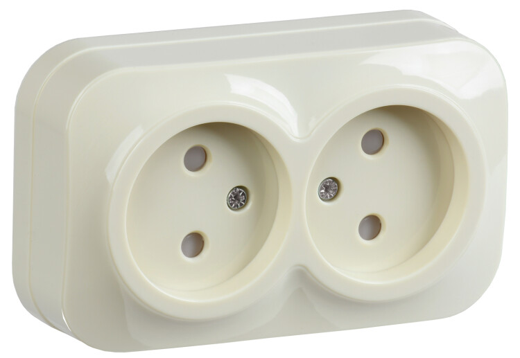 Розетка 2х2P со шторками 10А накладной монтаж РСш22-2-ХК кремовый GLORY IEK