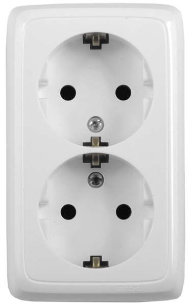 РА16-155 Розетка открытой установки, двухместная, с заземляющим контактом, с монтажной пластиной, цвет белый