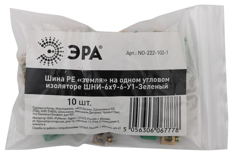 Шина ЭРА NO-222-102-1 PE земля на одном угловом изоляторе ШНИ-6х9-6-У1-Зеленый