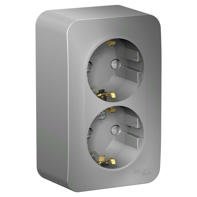 BLANCA О/У РОЗЕТКА двойная с заземлением со шторк., 16А, 250В, АЛЮМИНИЙ