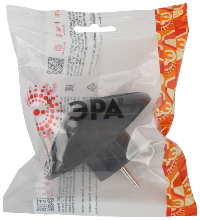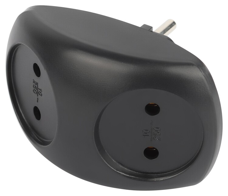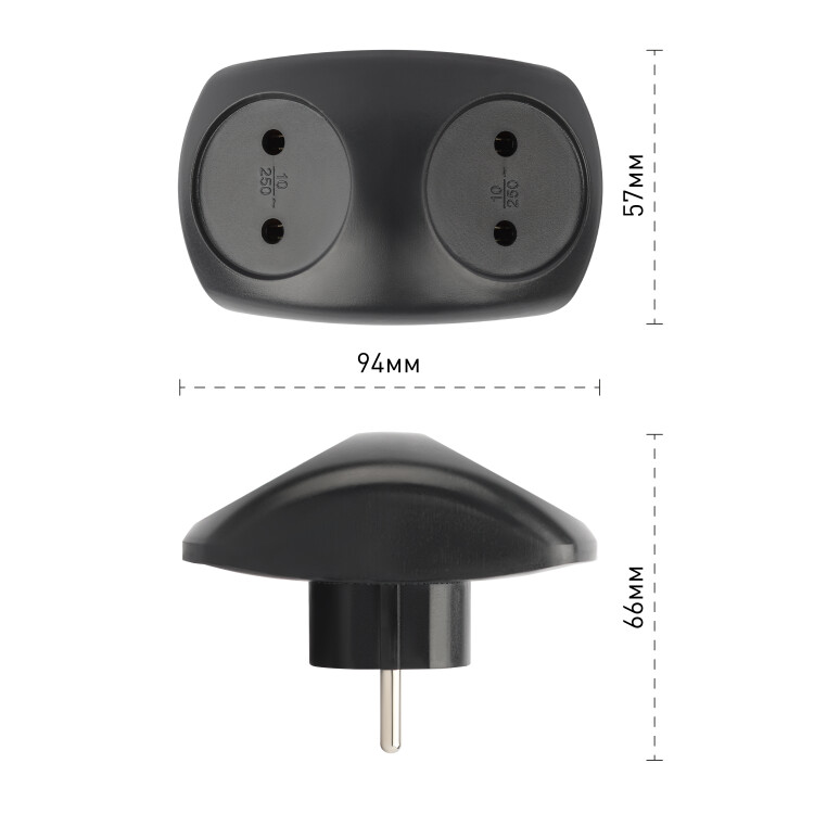 Разветвитель электрический ЭРА SPx-2-B на 2 розетки без заземления 10А черный