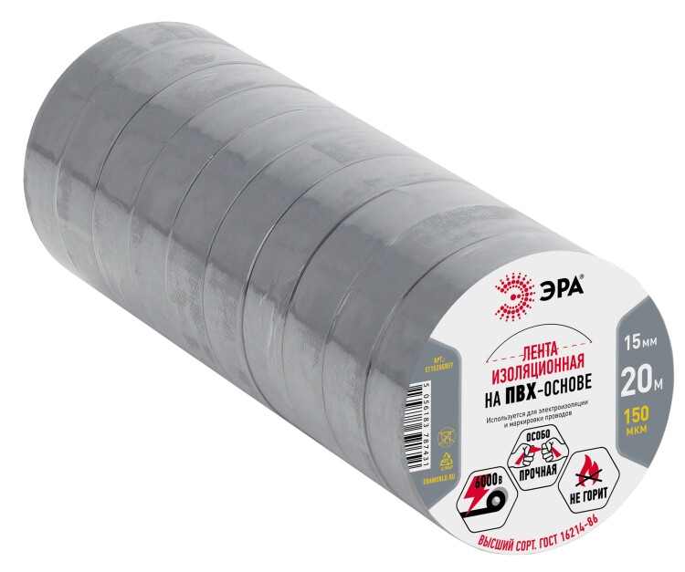 Изолента ЭРА ET1520GREY ПВХ 15мм х 20м серая
