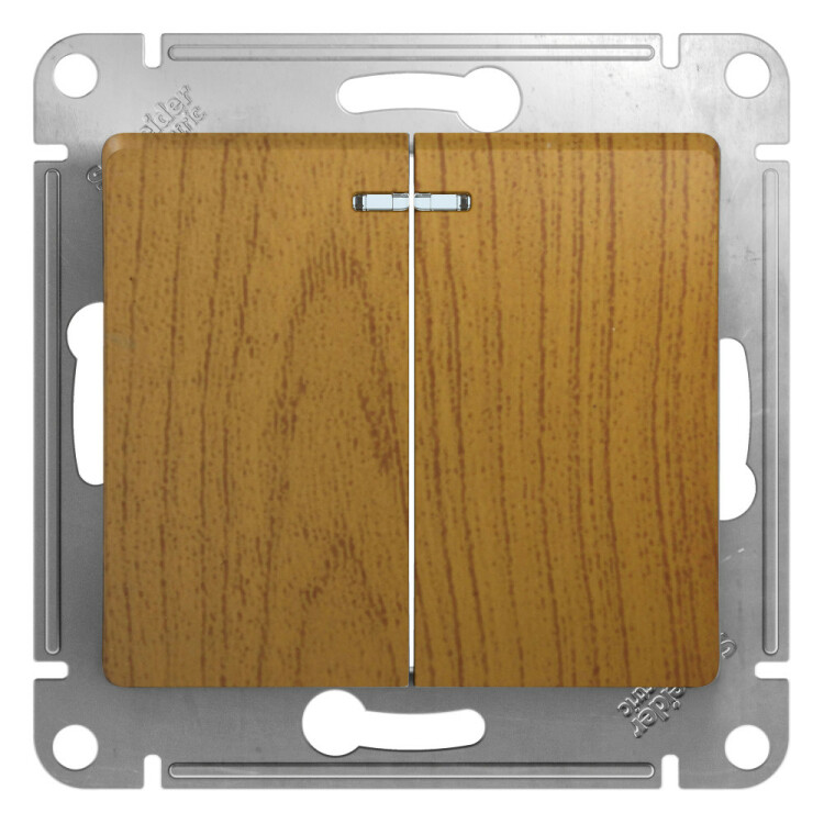 Выключатель 2 клавишный с подсветкой 10А дерево дуб Glossa
