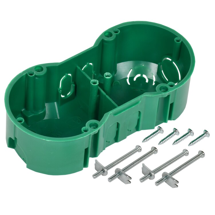 Коробка установочная 2-х местная 141х70x45мм для полых стен (с саморезами и мет. лапка), КМ40023