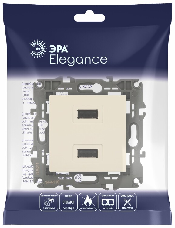 Устройство зарядное USB, 230В/5В-2100мА, IP20, Elegance, сл.кость 14-4110-02