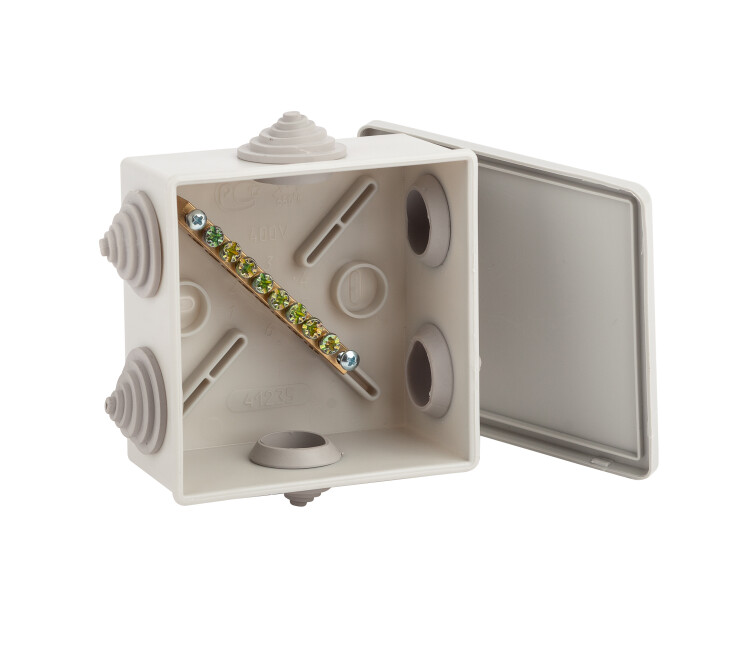 Коробка уравнивания потенциалов KUPR 85х85х40мм, шина 6х9, 8 групп IP44 (60/1800)