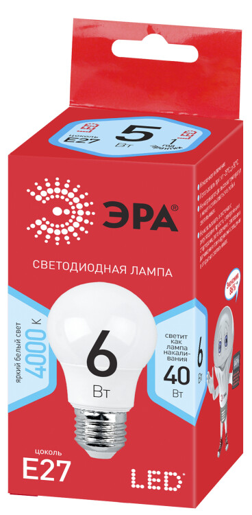 Лампочка светодиодная ЭРА RED LINE LED A55-6W-840-E27 R E27 / Е27 6 Вт груша нейтральный белый свет