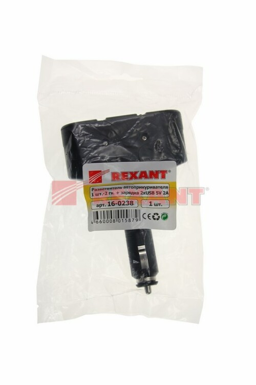 Разветвитель автоприкуривателя, 2 гнезда, 1xUSB (5В, 1000мА) REXANT