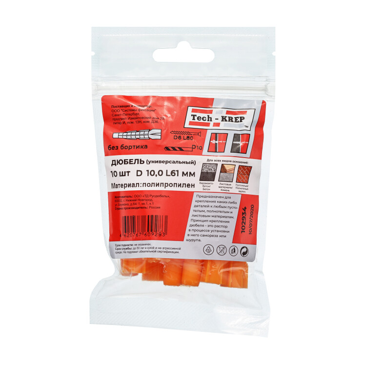Дюбель универсальный 10х61 (полипропилен) (10 шт) - пакет