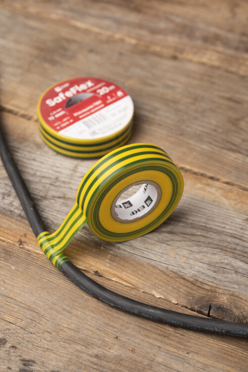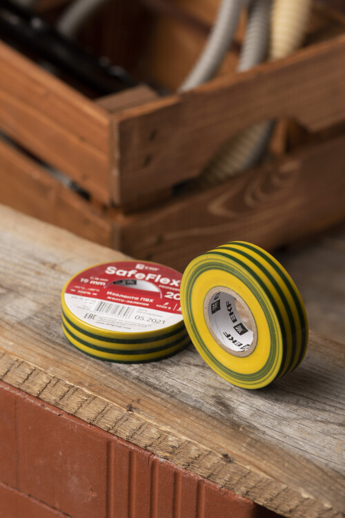 Изолента ПВХ желто-зеленая 19 мм х 20 м SafeFlex