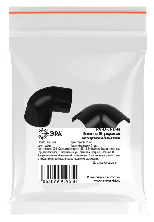 Поворот ЭРА T-90-KK-30-13-GR на 90 градусов для полукруглого кабель-канала графит 30х13мм 2шт/комплект