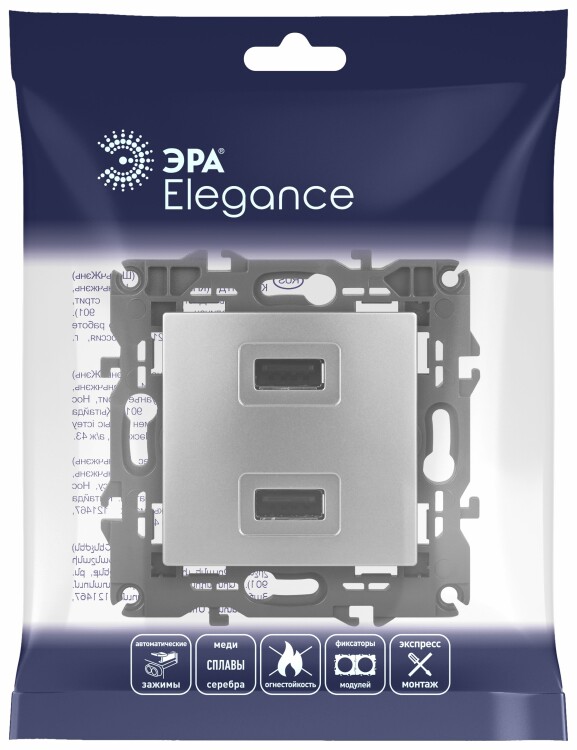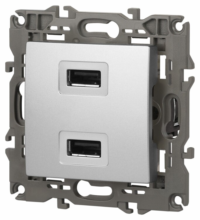 Устройство зарядное USB, 230В/5В-2100мА, IP20, Elegance, алюминий 14-4110-03
