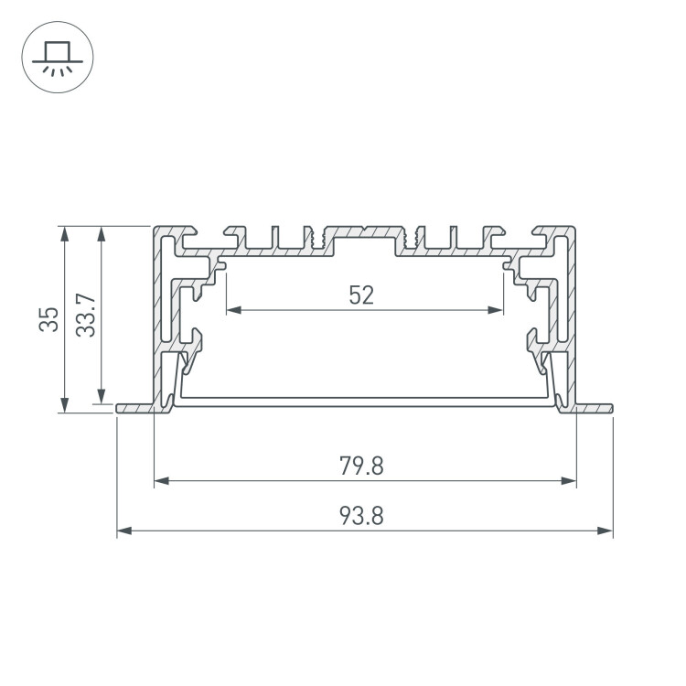 Алюминиевый Профиль встраиваемый S2-LINIA94-F-2500 ANOD+OPAL с экраном (2,5 метра)