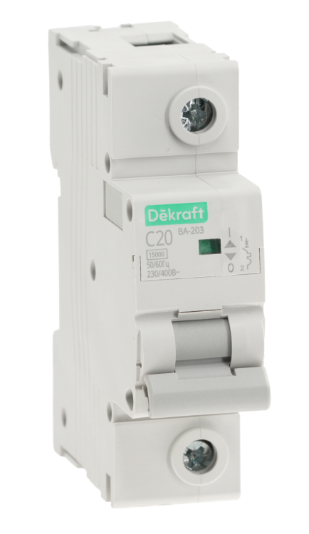 Автоматический выключатель серии ВА-203 Dekraft; 1P; ном. ток 20А; характеристика C; откл. способность 15 кА; ширина модуля 27мм. Аппараты имеют механизм мгновенной коммутации, 7 монолитных заклепок, которые повышают прочность корпуса. Боковые каналы охлаждения повышают стабильность работы при высоких температурах окружающей среды. Есть возможность установки дополнительных аксессуаров с обеих сторон устройства. Аппарат на 100% совместим с корпусами и оболочками Dekraft и Systeme Electric.