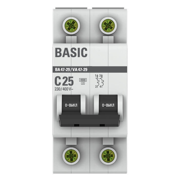 Автомат. выкл. 2-пол. 25А тип C 4,5кА серия ВА 47-29 EKF Basic