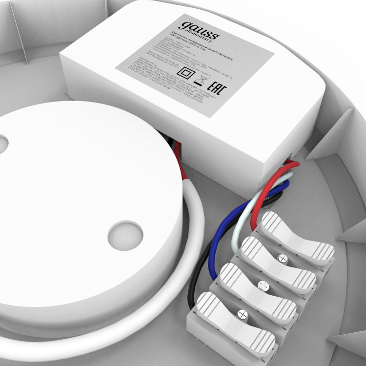 Св-к светодиодный Gauss Elementary IP54 D205x65 18W 1620lm 4000K 185-265V ЖКХ круг c БАП 1час 1/20