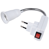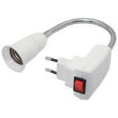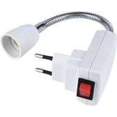 Переходник вилка-патрон E27 гибкий 150мм c выключателем Белый