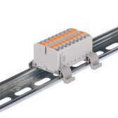 Блок распределительный с гориз. адаптером на рейку шириной 35мм, зажим push-in, 18 точек подключения 2,5 кв.мм, серый