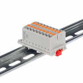 Блок распределительный с гориз. адаптером на рейку шириной 35мм, зажим push-in, 12 точек подключения 2,5 кв.мм, серый
