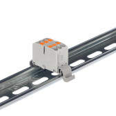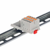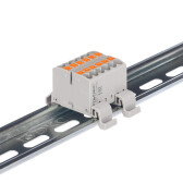 Блок распределительный с гориз. адаптером на рейку шириной 35мм, зажим push-in, 4 точки подключения 2,5 кв.мм, серый