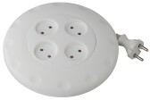 Удлинитель, 4 розетки, длина 5 м, 10А, ПВС 2х0.75 мм², б/з, IP20, полипропилен, белый, рулетка, UR-4-5m-W
