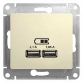 Розетка USB 2 порта A + A 5В/2,1А 2х5В/1,05А бежевый AtlasDesign