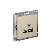 Розетка USB 2 порта A + C 5В/2,4А 2х5В/1,2А песочный AtlasDesign