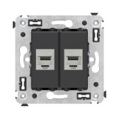 Компьютерная розетка RJ-45 без шторки в стену, кат.5e двойная экранированная, "Avanti", "Черный матовый"