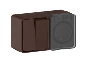 Блок выключатель 2 клавишный + розетка 2Р+Е со шторками накладной коричневый AtlasDesign Profi54