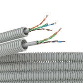Электротруба ПВХ гибкая гофрированная д. 16 мм, цвет серый, с кабелем витая пара 5EU/UTP нг(А)-HF, 50 м