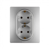 Розетка 2x2P+E 16А в сборе алюминий Etika (замена на 672472)