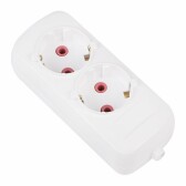 Колодка розеточная, 2 розетки, 16А, б/з, IP20, пластик, белая, K-2